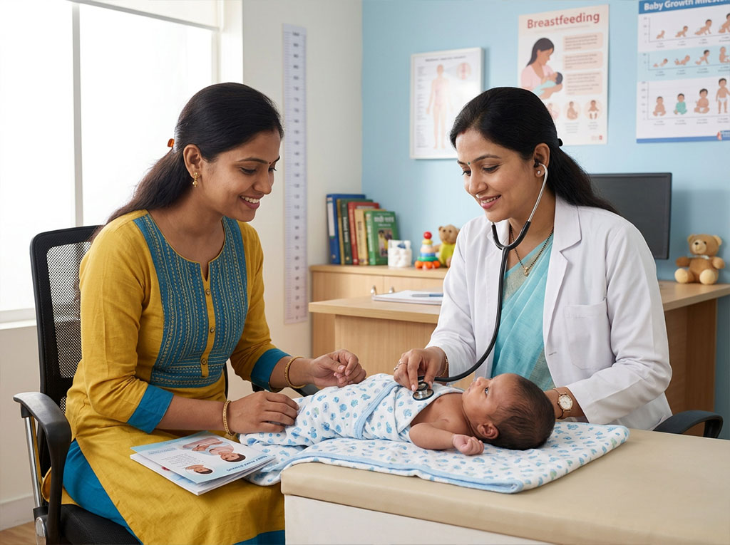 Yes. Newborn care includes feeding guidance, latch and breastfeeding support, jaundice monitoring, weight gain assessment, hygiene advice, cord care guidance, sleep pattern counseling, and early warning sign evaluation. New parents should not hesitate to seek help for poor feeding, excessive sleepiness, yellow discoloration, fever, repeated vomiting, or poor urine output.